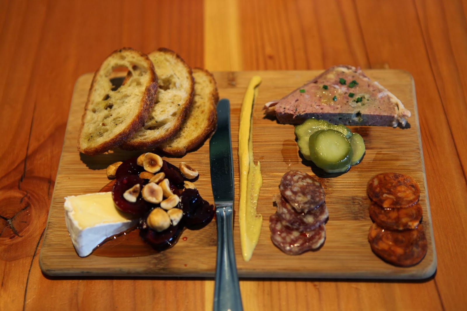 Charcuterie Plate: (rotates with local sourcing) Dinah’s Cheese, Grand Central Baguette, Housemade Pickles