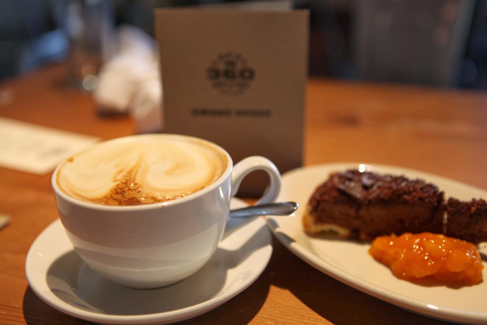 Stumptown Coffee Latte, Chocolate Tart, Apricot Chutney